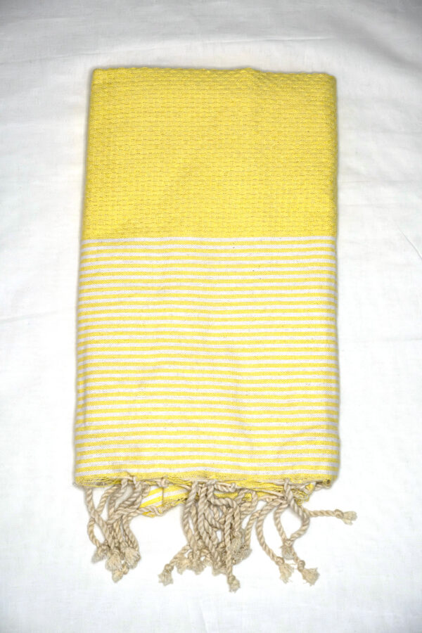 Discover the authentic elegance of the Tunisian Sunshine Nid d’Abeille, a true artisanal treasure that seamlessly blends tradition with modernity. Directly imported from Tunisia, this fouta embodies the exceptional craftsmanship of local artisans, woven with passion to create a one-of-a-kind product.